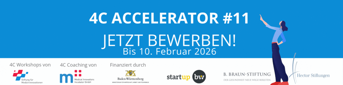 Die Bewerbung für den kostenfreien 4C Accelerator des Medical Innovation Inkubator und der Stiftung für Medizininnovationen ist noch bis 10. Februar möglich.